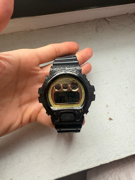Iced out black diamond & moisannite g shock DW-6900CB watch