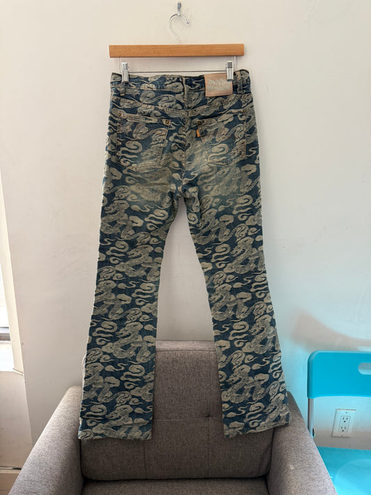 jacquard print all over denim pants